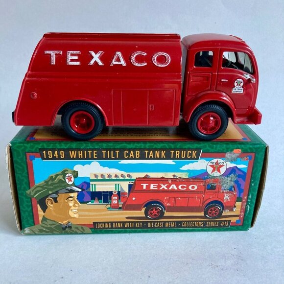 Vintage Ertl Texaco 1949 White Tilt Cab Tank Truck Coin Bank w/ KEY!