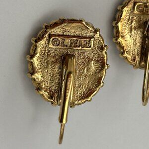 Vintage Erwin Pearl Gold Tone Black Cabochon Faux Pearl Cluster Earrings Signed