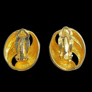 Vintage Erwin Pearl Gold Tone Oval Swirl Clip On Earrings Collectible 1990s