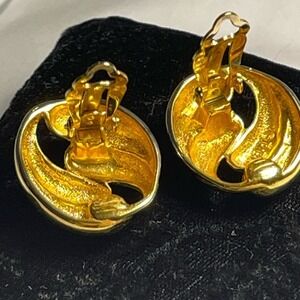 Elevate your jewelry collection with these stunning preowned Estate Vintage Erwin Pearl Gold Tone Oval Swirl Clip On Earrings from the 1990s.