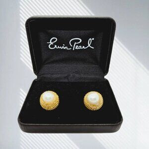 Vintage Erwin Pearl Gold Tone Pearl Cufflinks in Box