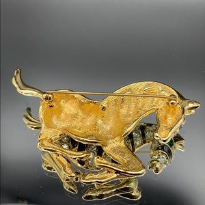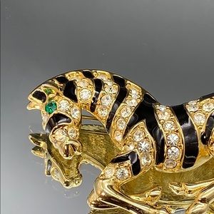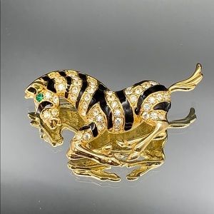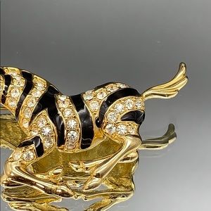 Black enamel, CZ, Swarovski Crystals, gold plated brass, pin. 1.5 x 2.5 inches