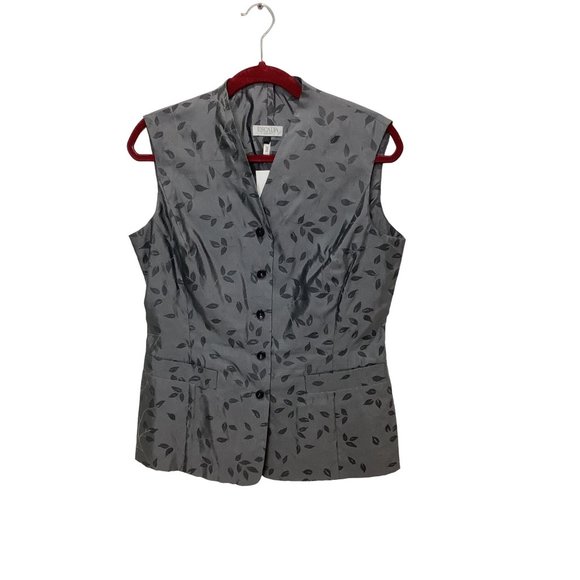 Vintage Escada Grey Leaf Sleeveless Silk Vest