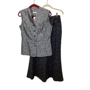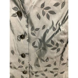 This is a beautiful Vintage Escada Grey Leaf Sleeveless Silk Vest that has a matching skirt that is sold seperately. This vest is very multi- versitale. It can be worn with so many things. I love wearing vest over a long sleeve solid maxi dress to give it some interest. It buttons up the front and has two pockets.