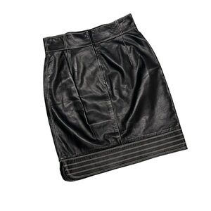 Vintage Escada Leather Pencil Skirt Classic Biker Core Quiet Luxury Black 10