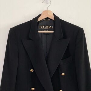 Vintage Escada Margaretha Ley Cashmere Blazer Double Breasted Jacket in Black, Women’s Size EU 38 / US 8 Medium.