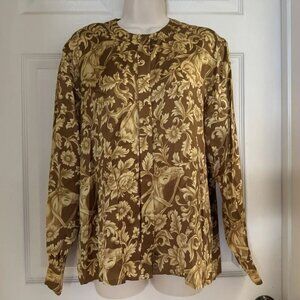 Vintage Escada Margaretha Ley Silk Gold Brown Blouse Button Front