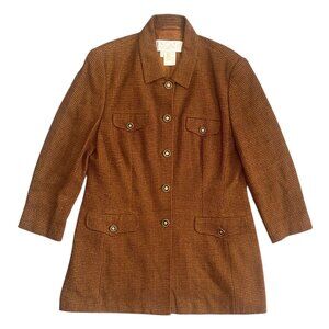 Vintage Escada Margaretha Ley Wool Blend Tweed Blazer Orange Size 14 Gold Button