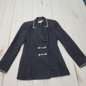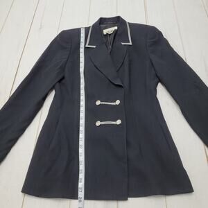 Vintage Escada Margathera Ley black wool blazer silver buttons trim