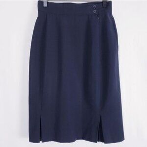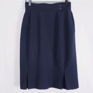 Vintage Escada Modest Black Pintuck Pleated New Wool Midi Pencil Skirt sz Small