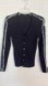 Vintage Escada Dark Navy Knit Cardigan w/ Blue Denim, Fringe Flower Sleeve Trim US 6