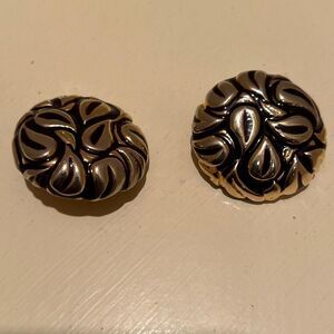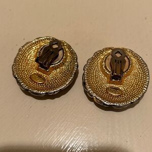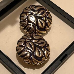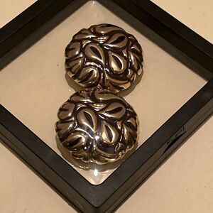 Vintage Escada Round Clip On Earrings Black & Gold Tone Baroque Regencycore