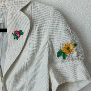 Vintage Escada Short Sleeve Embroidered Coquette Lace Floral Button Down Blouse