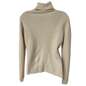 Vintage Escada Sweater Turtleneck Beige Wool Cashmere Pullover Women's 42 Medium