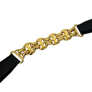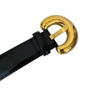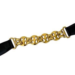 Vintage Escada Womens 34-36 Midnight Blue Patent Leather Gold Chain 80s Luxury