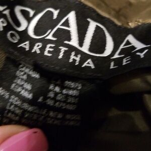 I bought and never wear this jacket. The pockets are still sewn shut. It is A beautiful non itchy wool gabardine blend with an acetate lining. This will be taken to the dry cleaner so it will come fresh in the dry cleaning wrapping. It measures approximately: