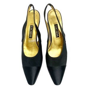 Vintage Escada Women’s Black Satin Sling Back Heels Size 8.5 AA
