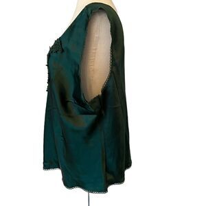 Silky feeling polyester. Excellent condition- no signs of wear. There is no size tag- I am calling this 2X based on the measurements below: