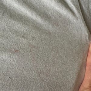 Smoke free; some light faded coloring/staining on back pictured pinkish hue barely noticeable. Wash upon receiving prior to wearing.