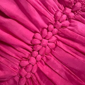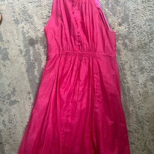 Charming pink sleeveless dress perfect for any occasion. Vintage with delicate covered buttons. So darling! Slight discoloration under arm, but did not want to launder as it is so sheer and delicate.