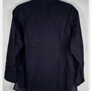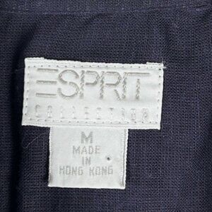 Vintage Esprit Dark Blue Embroidered Sunflower Button Up Top Sz M Cotton Linen