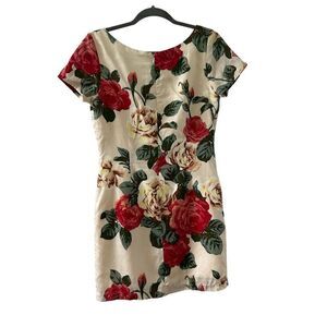 Vintage Esprit Floral Short Sleeve Mini Sheath Dress Cream Red Women's Size 7/8