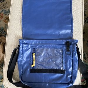 Royal blue vintage bag in excellent condition. Super clean. Feels like oilcloth? Made in Korea
