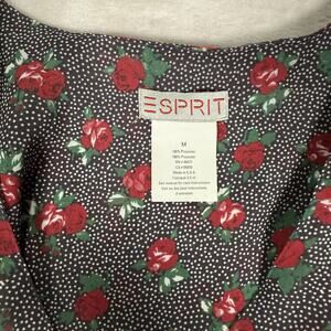 This vintage Esprit mini dress in women's size medium features a floral pattern with red roses, making it a trendy choice for various occasions such as travel, weddings, parties, or casual wear. The dress has a V-neckline, short flutter sleeves, and a button closure, adding to its retro charm. Made of lightweight polyester fabric, this dress is perfect for the summer, fall, and spring seasons. With a fit and flare style, this dress is sure to be a standout piece in any wardrobe, embodying the Y2K and 90's fashion trends.