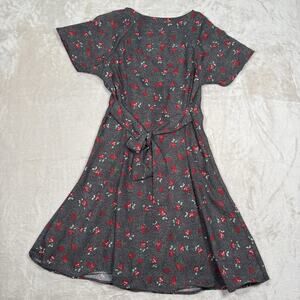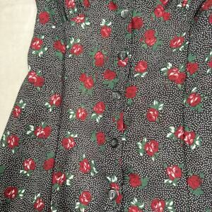 Vintage Esprit Mini Dress Black Floral Y2K 90's Red Roses Women's Size Medium