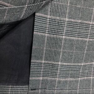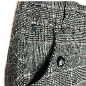 Unique front clousure: 2 buttons and a 21/2” zipper ( the tiniest zip I ever seen). Belted Loops, with a rib black knit fabric at the center back.
