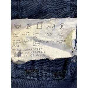 Vintage Esprit Sport 100% cotton trousers in deep navy blue. Made in Hong Kong, these pants feature a flattering high-rise waist with double button closure, front pleats, and tapered legs. Classic 80s/90s silhouette with roomy hips and structured cotton twill fabric. Perfect for pairing with a cropped tee or tucked blouse for an effortless vintage look.