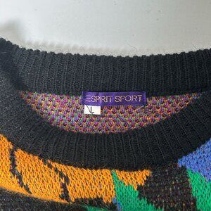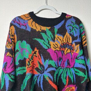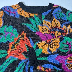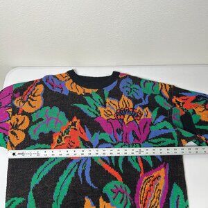 Vintage Esprit Sport Sweater Size L Tropical Floral Novelty Pullover 80's