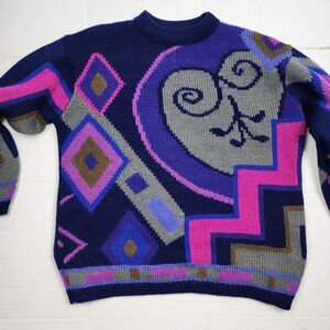Vintage Esprit Sweater with Pink Blue And Metallic Geometric Design