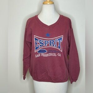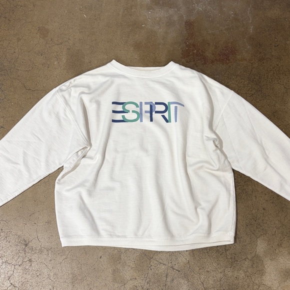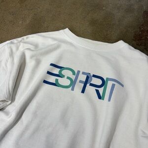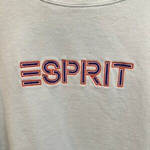 Vintage Esprit White Pullover Sweatshirt Long Sleeve with Multicolor Logo 90s