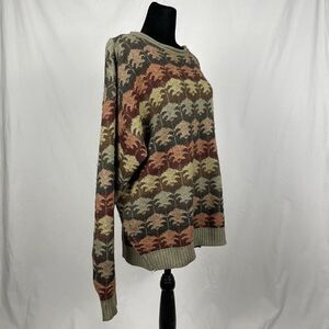 Green Fall Leaf Motif Wool / Cotton Blend Vintage Essay Linda Larson Oversized Drop Shoulder Sweater.