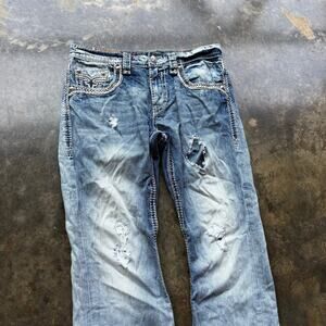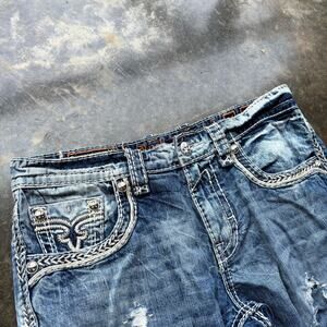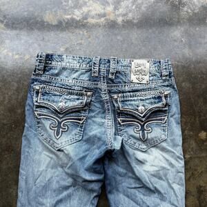 Vintage Essential Distressed Rock Revival Jeans 34x32 10 Step up your denim game with these vintage Rock Revival jeans! These jeans feature a stylish distressed look, giving them a unique and edgy vibe. Perfect for adding a touch of rock-and-roll to any outfit. Embrace the vintage charm and make a statement with these Rock Revival jeans! They are in great condition. Don't miss out—grab them before they're gone!