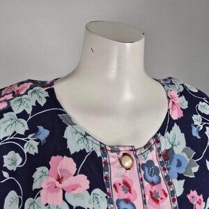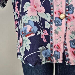 Vintage Essential Needs Blue Floral Button Up Blouse Size M