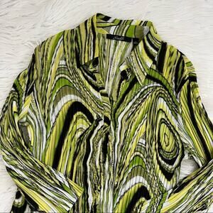 Vintage Essentials by Milano Green and Black Swirl Crinkle Button Down Shirt