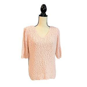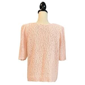 Vintage Essex Junction V-Neck Sweater Women's Size Large Pink Knit Short Sleeve
