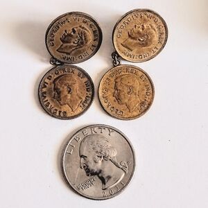 Earrings are dangle style & feature vintage Canadian 1939, 1942, 1943 & 1947 pennies. They have 12K gold filled screw backs marked by the designer A & Z and appear to be in good overall vintage condition showing minor wear from use, age and/or storage. Signed & weighed 14.1 grams. Very unique. Please view pics closely for size comparison and condition details. Perfect to add to any jewelry collection.