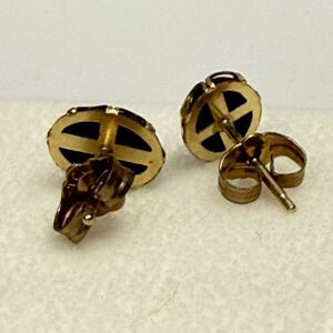 Vintage Estate 12k YELLOW GOLD ONYX OVAL STUD EARRINGS Mark Christopher Hawaii