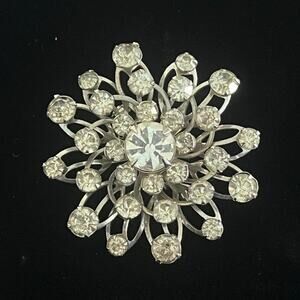 Vintage, Estate - 1950s Silver Tone Rhinestone Atomic Sunburst Brooch, unsigned