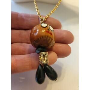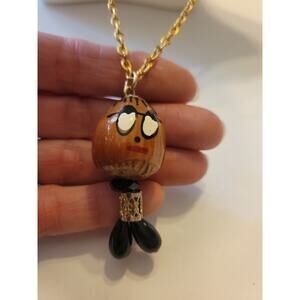 Vintage Estate Acorn Head Charm Pendant handmade Necklace Gold Tone Real Jewelry