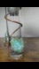 Beautiful estate sale piece. Copper leaves wrapped around handblown glass vase that is 7" x 1.5". Some discoloration of glass at the top looks like cloudy mineral deposit Could be removed possibly but barely visible. No chips or cracks.
