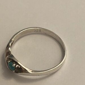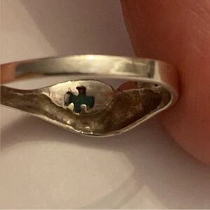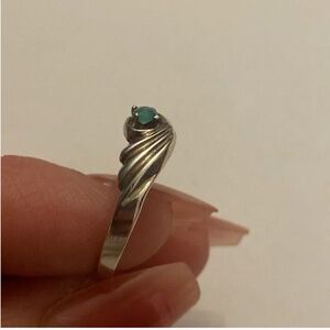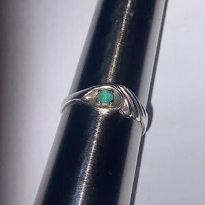 Vintage estate emerald ring. Gorgeous hand-crafted piece! I love the scalloped detailing of the “fan” surrounding the emerald. Green emerald stone is prong-set w/ 4 prongs. Very rare hallmark of an eagle; an actual eagle CUT-OUT that allows the light to pass through the stone fabulously (see all pics of this ring photographed with and without flash). You will be hard pressed to find another eagle cut-out for the assay. Stamped 925 + also confirmed solid sterling via acid test. Size 8 - perfect for a ring stack or wear her alone. Preowned but zero flaws.