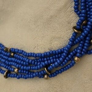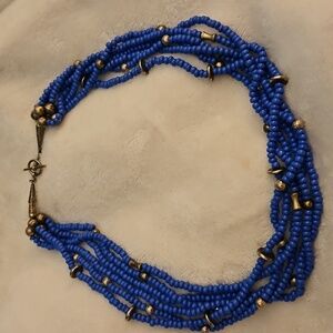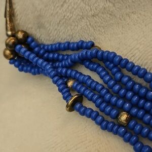 Vintage Estate Ethnic Cornflower Blue Multi-strand Beaded Necklace