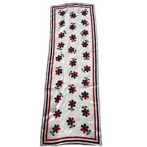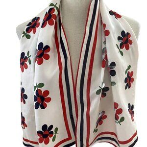 Vintage Estate Floral Print Scarf Mod 60s Made in Japan Red Blue Acetate 15X43”
