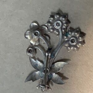 Two matching brooches. Vintage green rhinestone flower and insect. Not sold separately. Must stay together.