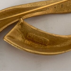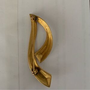 Vintage Estate Jewelry signed M Jent Brushed Gold Tone abstract brooch pin