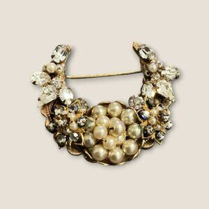 Vintage Estate Original By Robert Beaded Rhinestone Pearl Crescent Brooch
